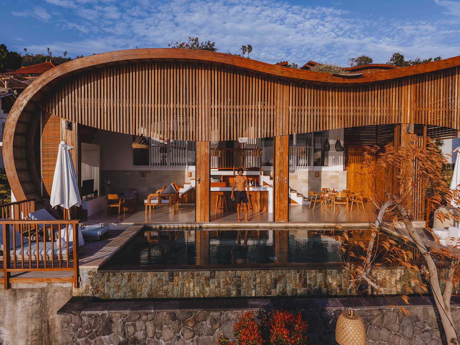 Set in the second row, Villa Suar offers a beautiful ocean views. Perfect for families or friends, this spacious two-bedroom villa combines modern comfort and elegance, featuring a private infinity pool and thoughtfully designed interiors. Every detail has been carefully considered to create a serene and refined atmosphere, ensuring your stay is truly unforgettable. The layout and design of Suar is the same as the two cliffside villas.