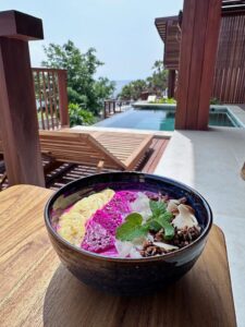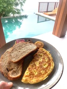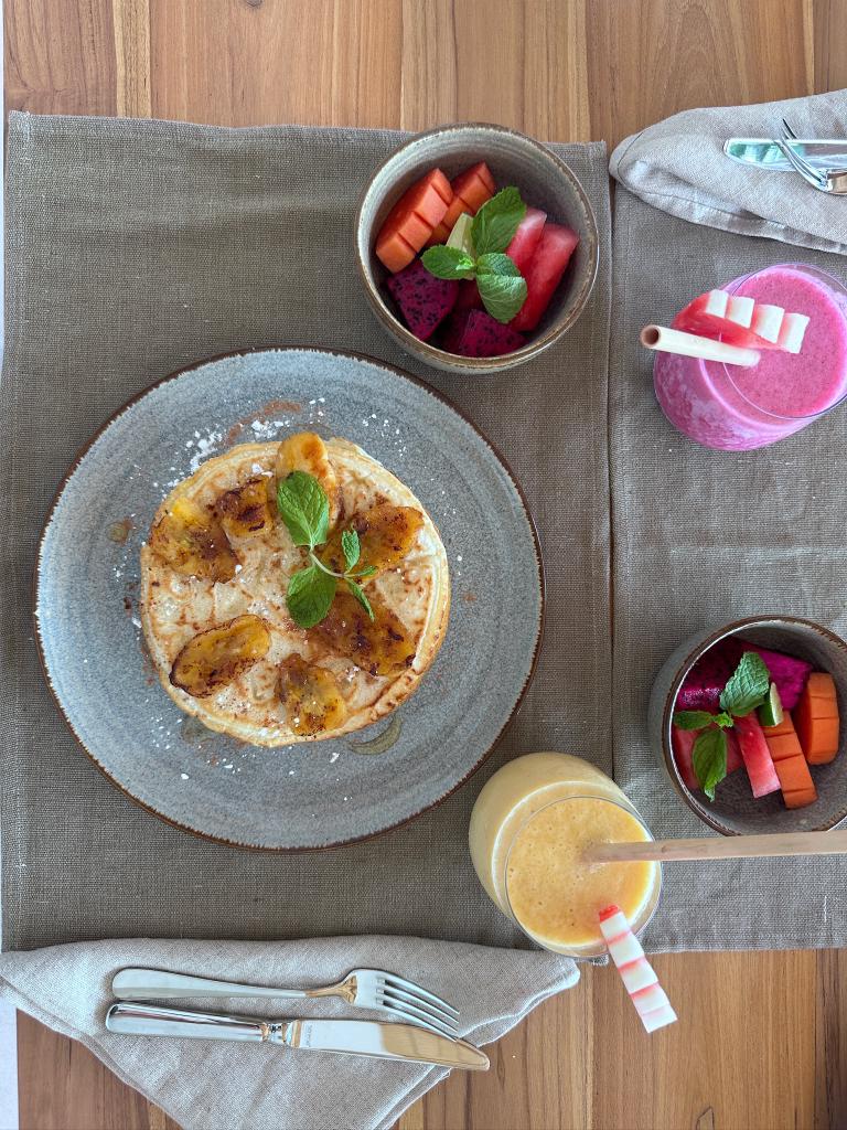 We serve beautiful breakfasts that include healthy and vegan options, fresh fruits, and Bali coffee or tea. We serve a limited lunch menu and have an extensive listing of nice fresh fruit juices, iced teas, and detox drinks.